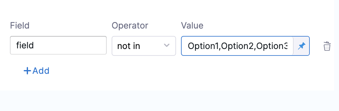 fieldto not be in eitherOption1,Option2, orOption3can be specified as: